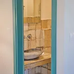 Aeolia Suites에서는 마당 볼 수있는 객실을 제공합니다. 싱크대, 싱크대, 싱크대는 욕실에 있습니다.